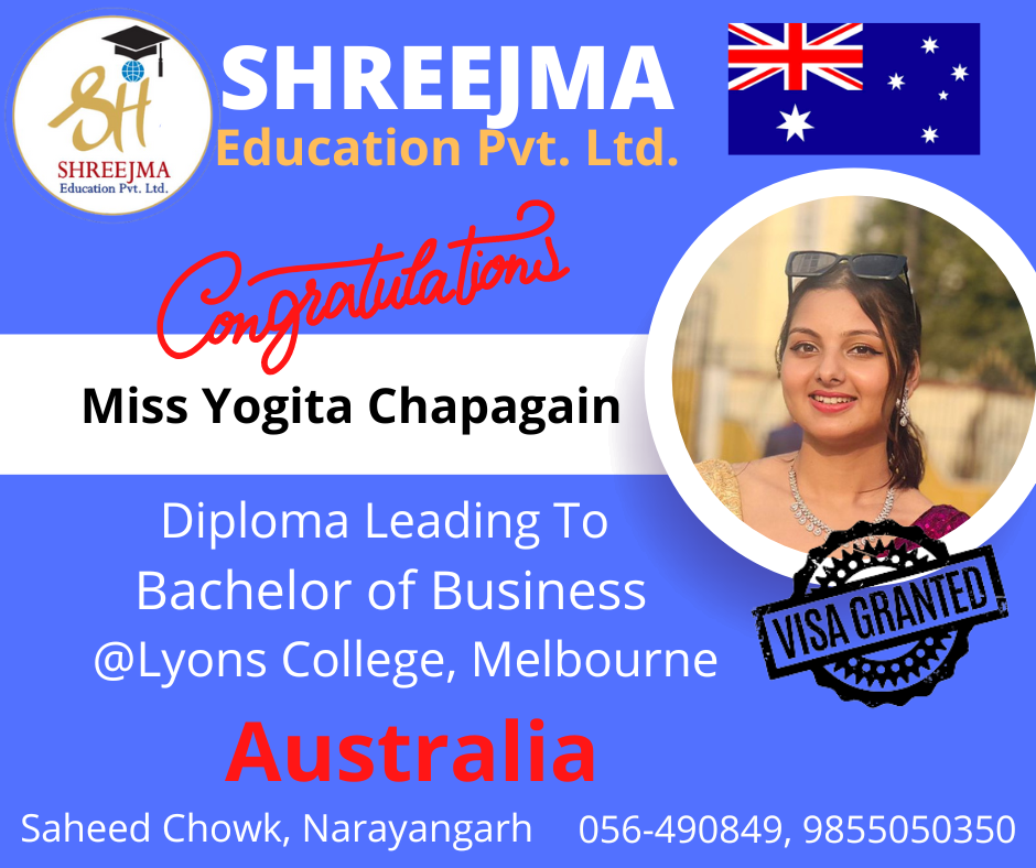 Shreejma Education was instrumental in my journey to Australia for higher education, offering comprehensive support from exam preparation to visa application. Thanks to their guidance, I smoothly adapted to life in Australia and highly recommend them to aspiring international students.